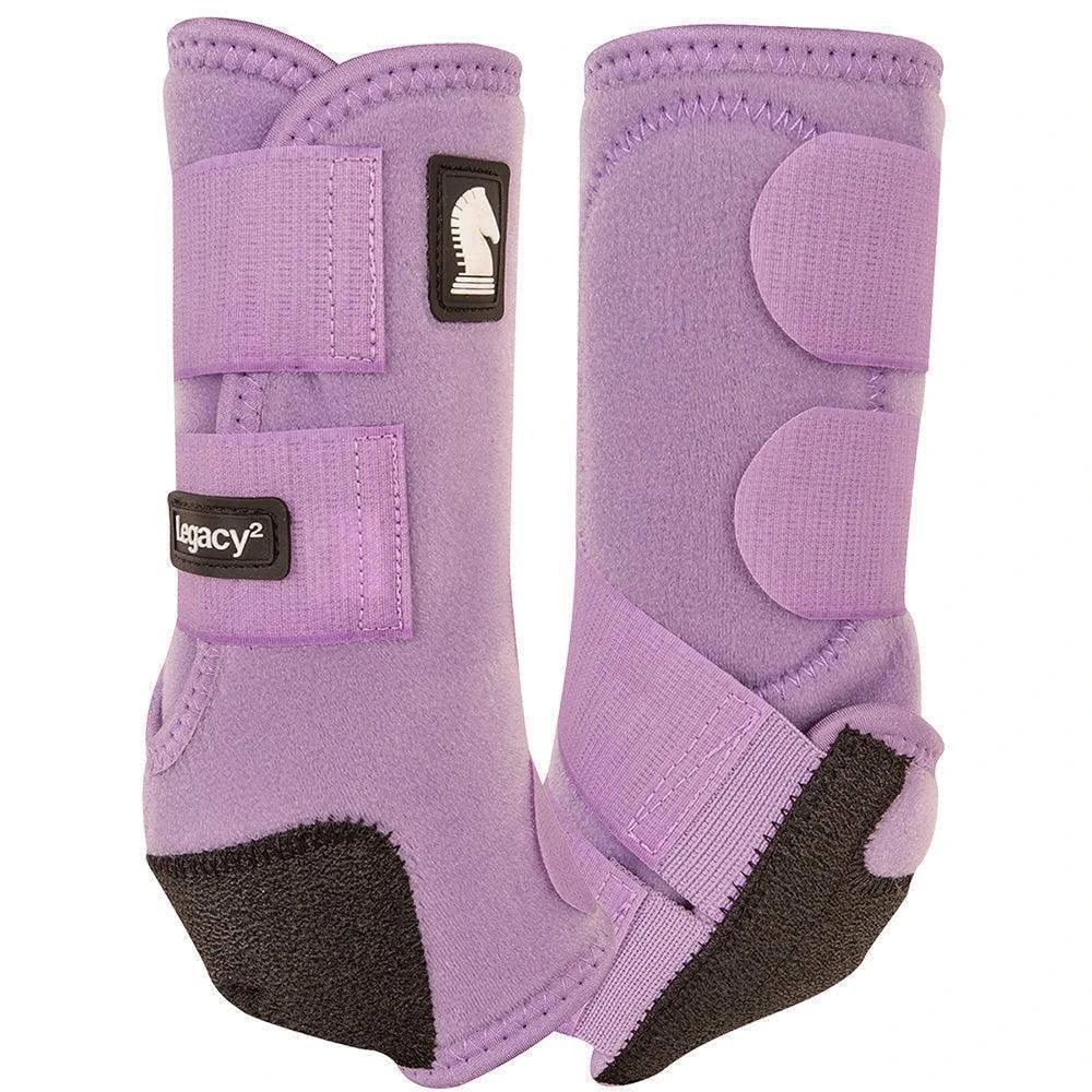 Classic Equine Legacy2 2 Pack Lavender Front Splint Boots provide maximum support and protection to the fetlock and lower portion of the leg. It mimics the design of, and therefore reinforces, the ligament it is intended to support. CSL102LV