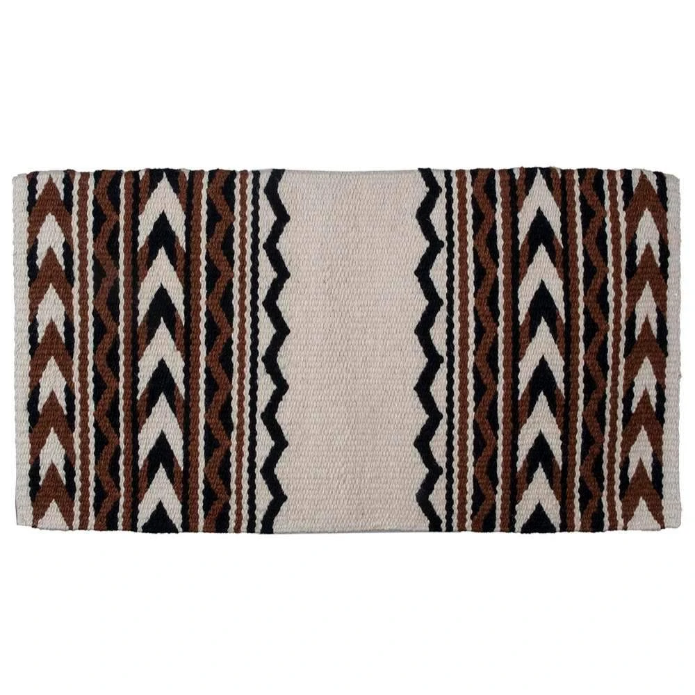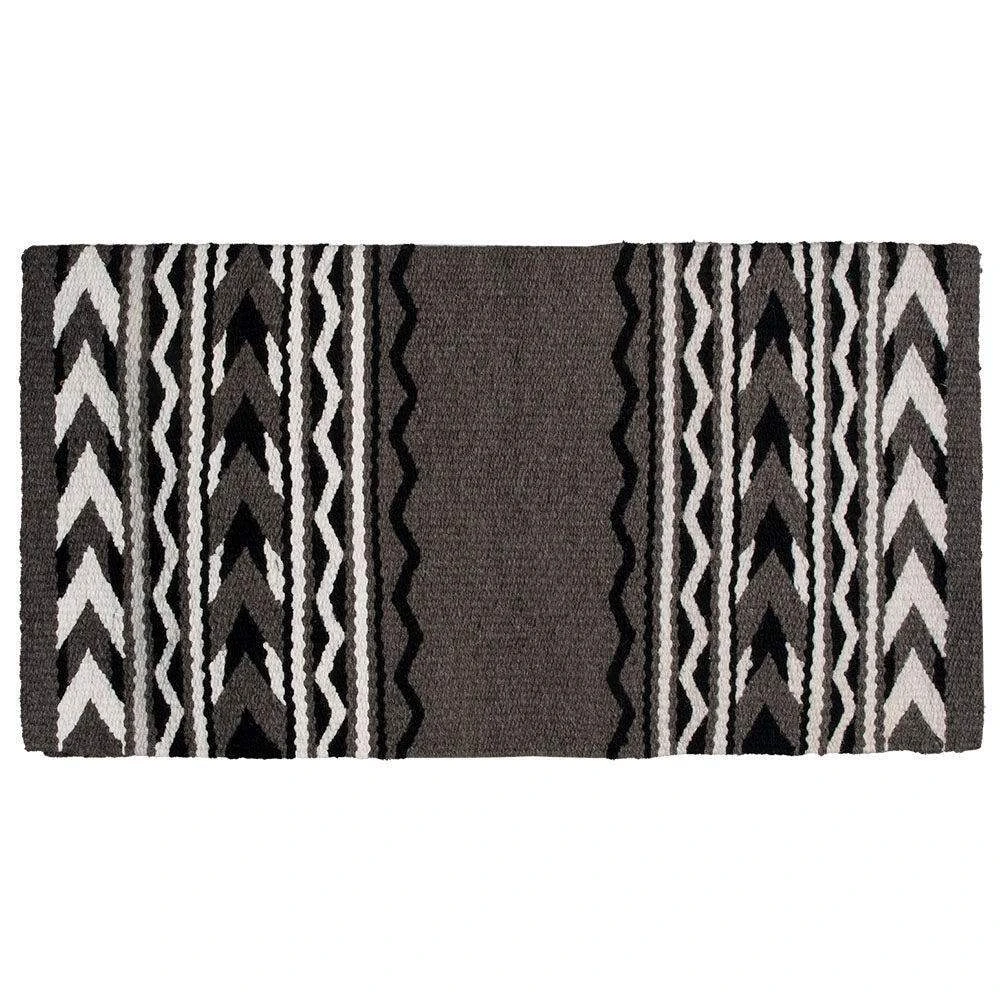 Mustang’s own custom “Arrowhead” blanket design hand woven of 100% New Zealand wool. 36″ x 34″.