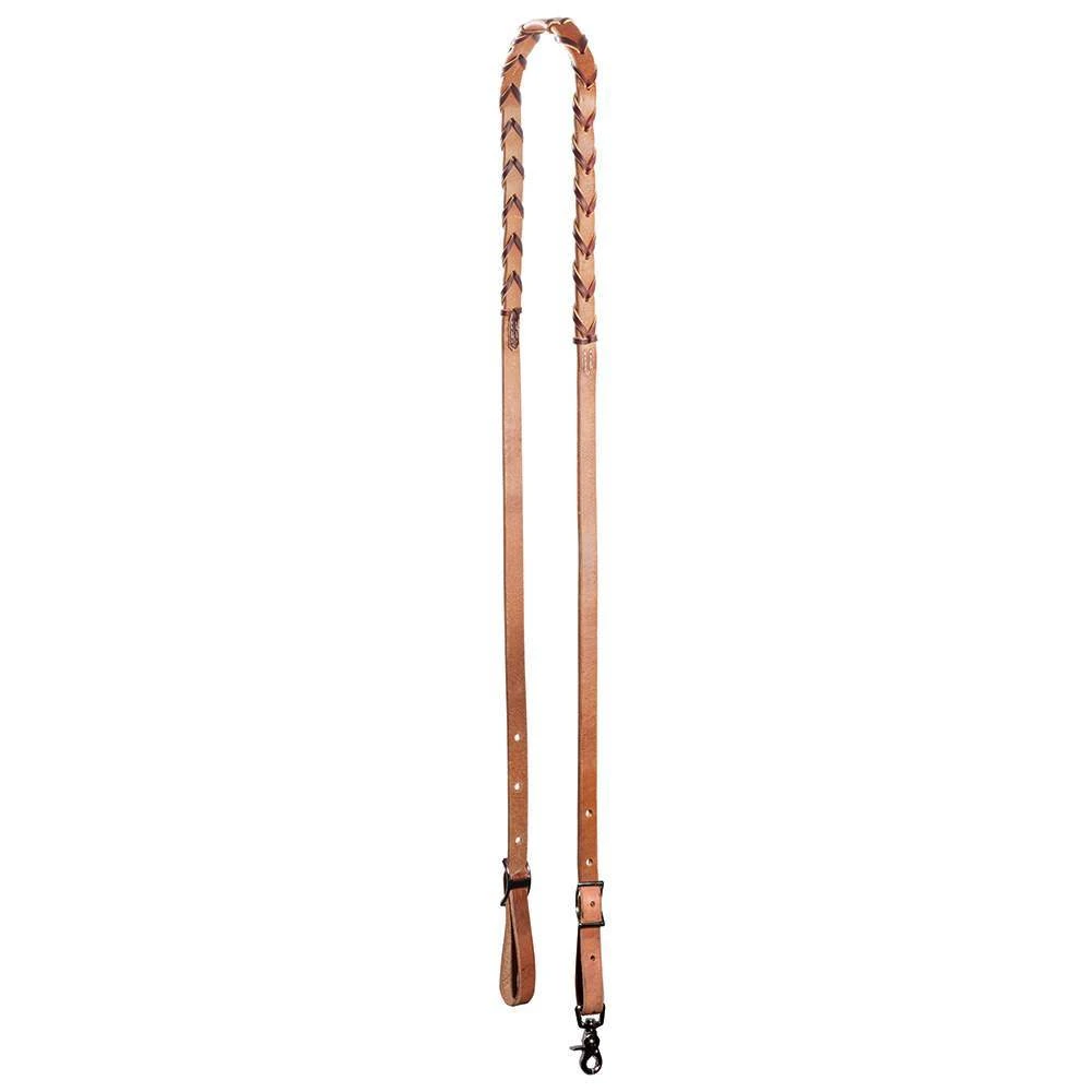 Professional’s Choice Harness Leather 5/8in Laced Barrel Reins are hand lace to provide secure grip during performance. Features nickel scissor snap and double conway buckles. 7392HL